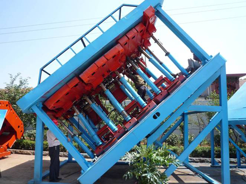 目前廣泛應用的掩護式和支撐掩護式綜采支架絕大多數(shù)都有斜向后下方的掩護梁,被切斷的頂板剛好能砸到它,致使支架重量大大增加,易落的偽頂有時會給頂梁施加向后的摩擦力造成移架時支架后仰。本架型采用了支撐式支架的結構,使被切斷的頂板直接砸到底板上,所以減小了載荷,也就減小了重量?朔死鲜街问街Ъ艿脑S多缺點,不但移架快,還大大提高了對惡劣地質條件的適應能力。該系列支架還有橫向移架功能和鎖架功能(即全工作面支架橫縱向都用油缸、閥鎖。,其穩(wěn)定性基本上不隨傾角增大和采高增大而降低,其重量也不像老式綜采支架那樣隨采高的增加而急劇增大。本系列支架解體運輸、現(xiàn)場安裝適用于支護傾角小于45度的2級2類頂板。